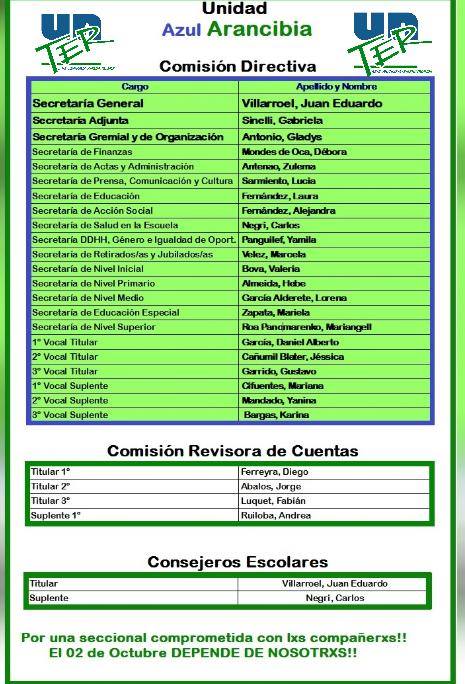 ELECCIONES UNTER: La lista propuesta por Juan Villarroel como candidato a Secretario General