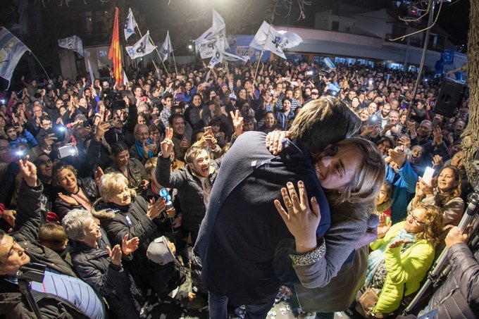 Está acompañada por su hermano y actual intendente de Roca quien brindó unas palabras de reconocimiento. “Vinieron otra vez por Roca, como hicieron el 7 de abril, y no pudieron”, dijo. “Nunca vi nada tan obsceno, rifando y malgastando los recursos de todos los rionegrinos”, expresó el alusión a la campaña de su principal contrincante, Juntos Somos Río Negro.