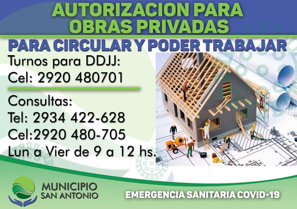 En Las Grutas y San Antonio Oeste podrán comenzar con las Obras Privadas de Construcción bajo autorización y protocolo sanitario